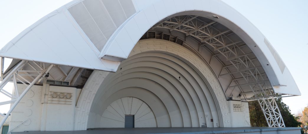 Inspired by the Hollywood Bowl, the Art Deco-styled Bandshell was built in 1936 according to designs prepared by the Toronto architectural firm of Craig and Madill. The stage is 338 square metres (3,640 sq ft) in size.