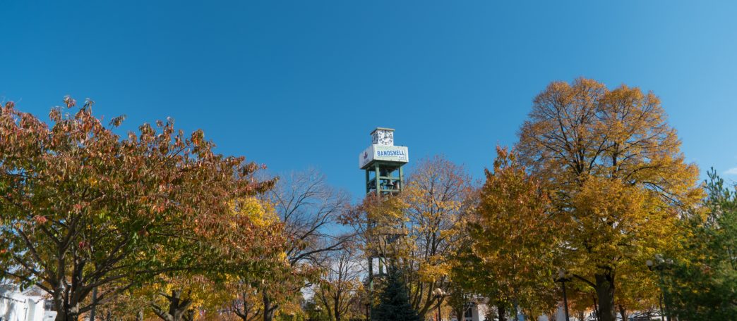 The adjacent green space is known as Bandshell Park. In the north-east corner of the park is the Exhibition Place Carillon. At the north-side of the park is the “Garden of the Greek Gods” collection of sculptures.